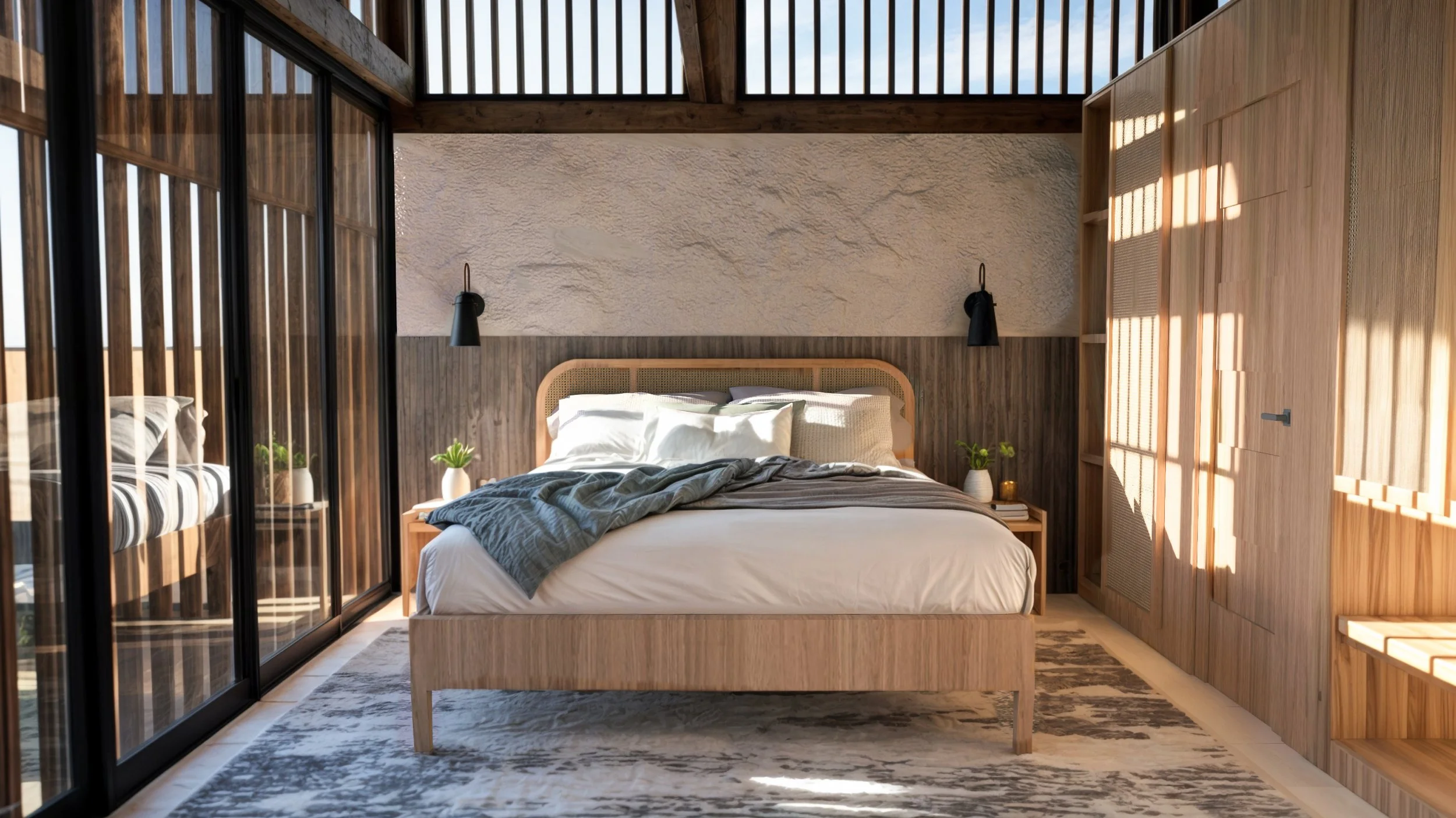 Los senderos elevados de madera recorren el conjunto y conectan los espacios habitables con la playa, en diálogo con la vegetación autóctona que refuerza la identidad del lugar. En el interior, materiales cálidos y luz natural crean ambientes serenos que invitan al descanso y a la contemplación del entorno.
