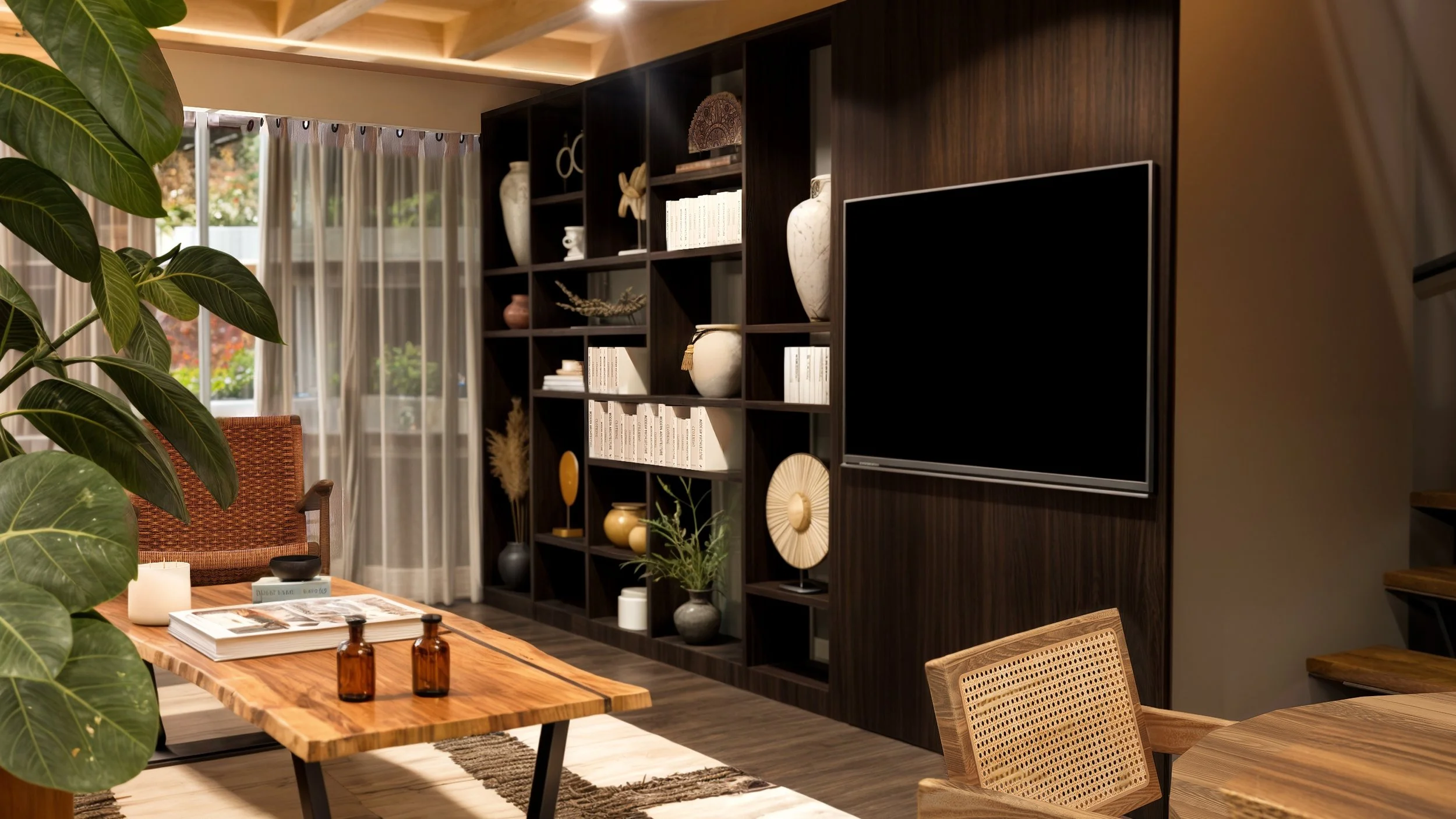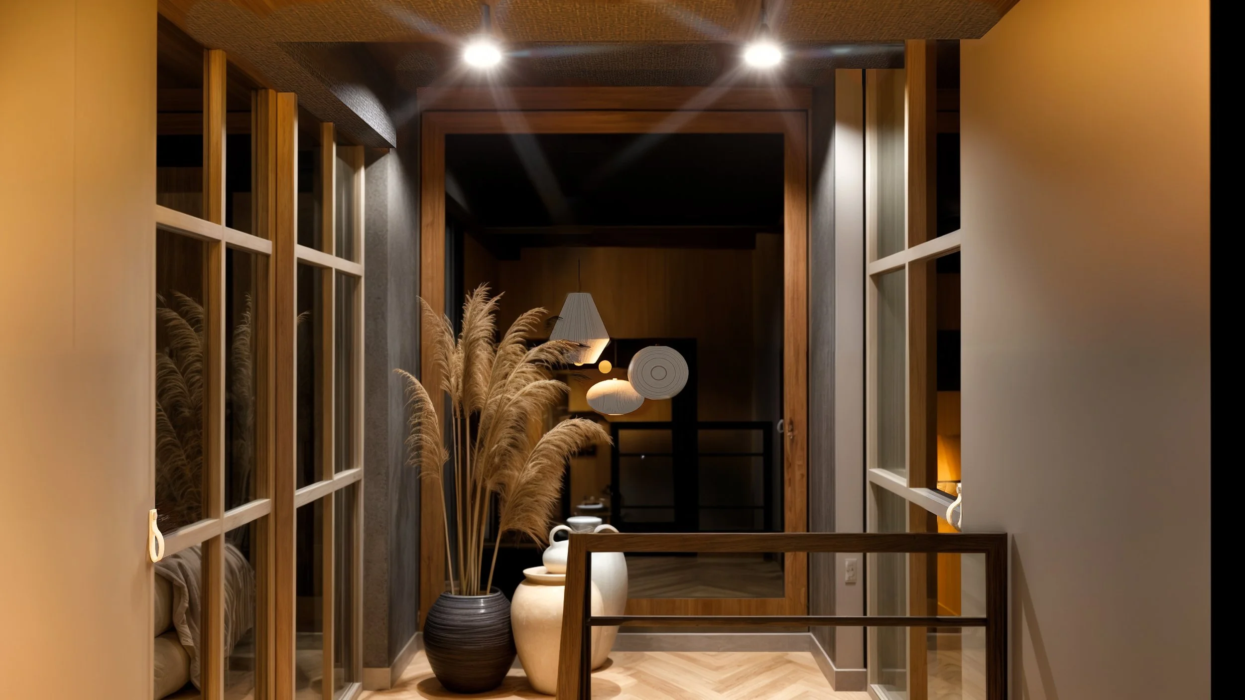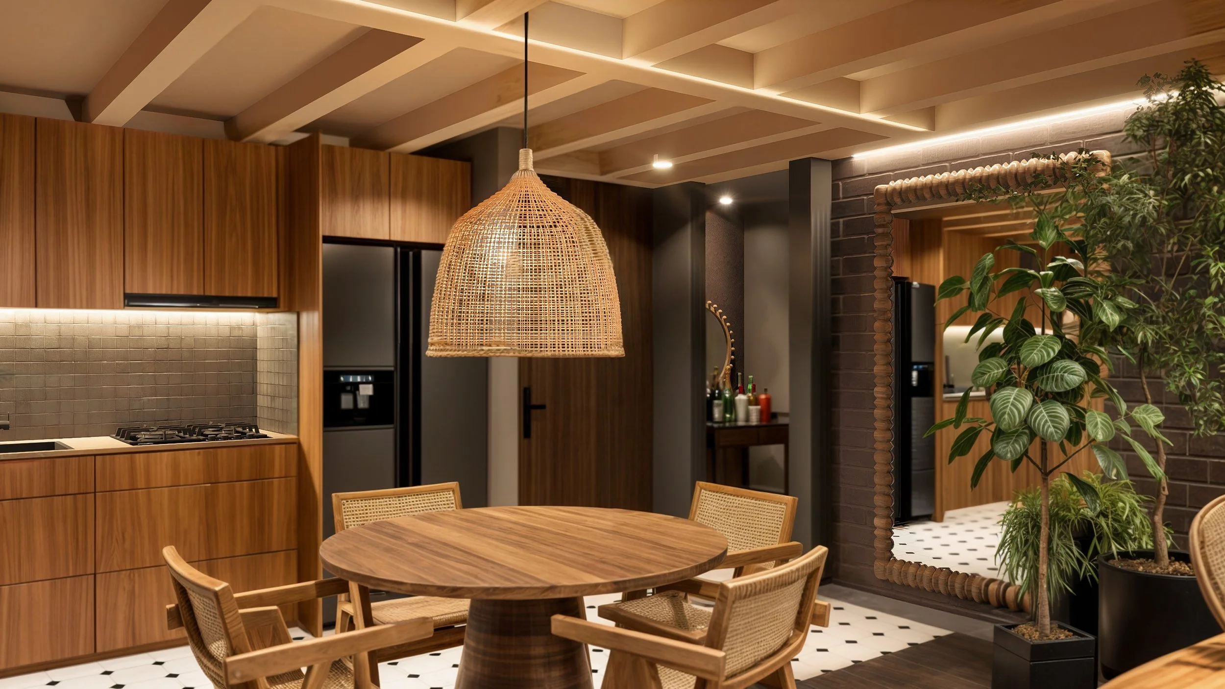 Apartamento de renta corta diseñado para ser cálido, fotogénico y resistente: planta social abierta con sala, comedor y cocina integrados; muros de ladrillo, cielorrasos en madera y vegetación que crean atmósfera acogedora. Mobiliario a medida en maderas y fibras naturales, iluminación regulable y acabados de alto tráfico facilitan la operación. La habitación incorpora escritorio panorámico y almacenamiento oculto para optimizar metros y confort del huésped. Ideal para estancias breves con experiencia de hotel boutique